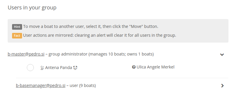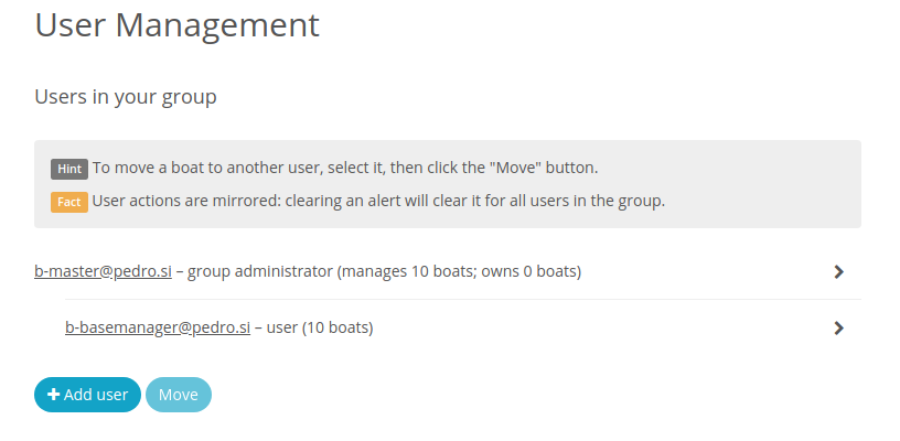 The supervisor account has full access to manage boats from all base managers, and can even move them between base managers. This means that if the base manager clears an alert, it will also be cleared for the supervisor, and vice-versa. All boat configuration is shared.