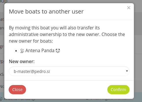The supervisor has the ability to move a boat from one Sentinel user account to another one, without additional confirmation from the base manager! This is a powerful tool, but use it with caution to avoid confusion.